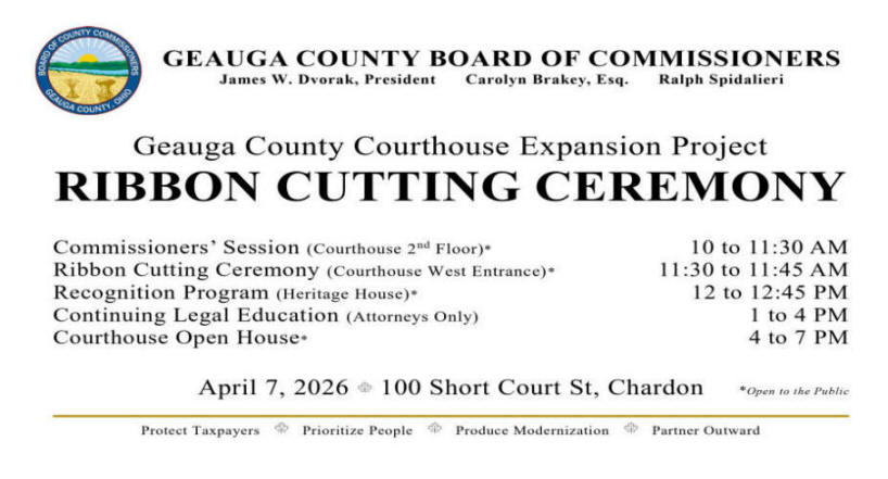 GEAUGA COUNTY COURTHOUSE RIBBON CUTTING CEREMONY SCHEDULE; PUBLIC INVITED
